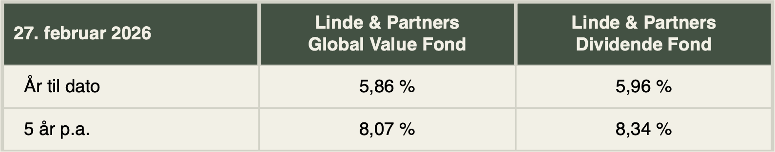 Samtidig fungerer stabilt indtjenende virksomheder – som netop kendetegner Linde & Partners’ porteføljer – som en sikker havn i usikre tider. Derfor er det heller ikke nogen overraskelse, at vi ser kursstigninger til netop den type virksomheder nu. Eller som Aholds finansdirektør udtalte i forbindelse med det seneste regnskab: